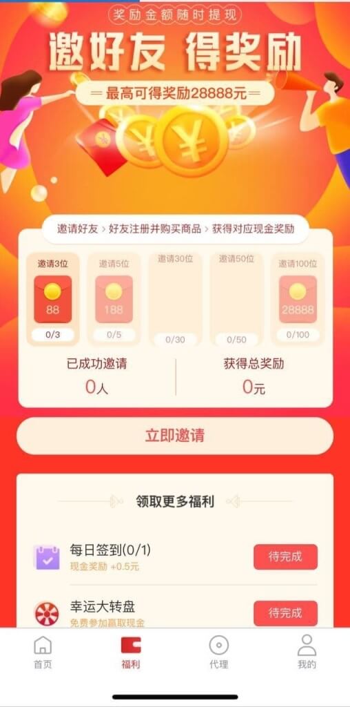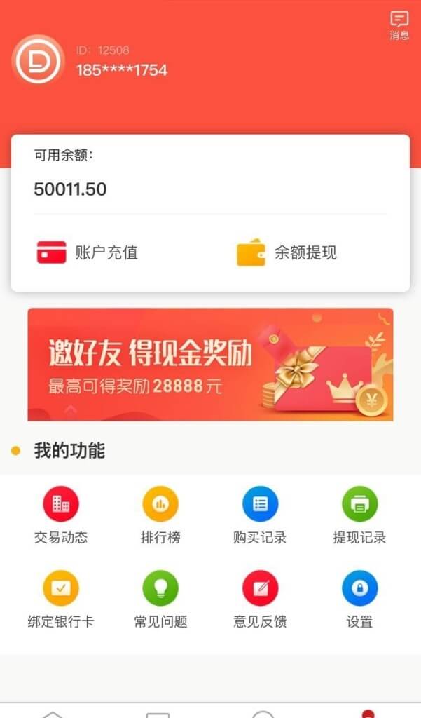 4、用户理财,分享者获得2%-5%三级分成现金奖励。