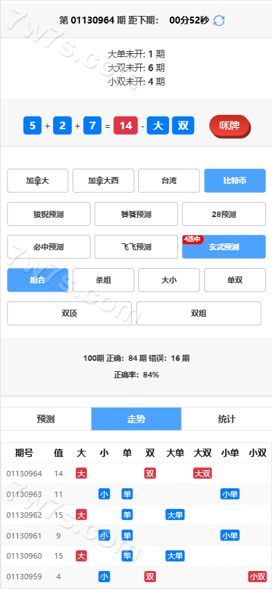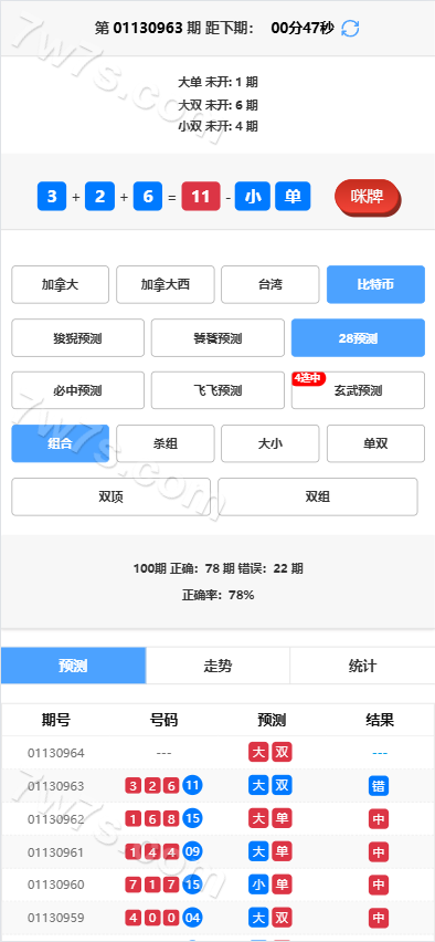 加拿大28在线预测、开奖结果查询、历史记录、数据统计分析、走势图等等