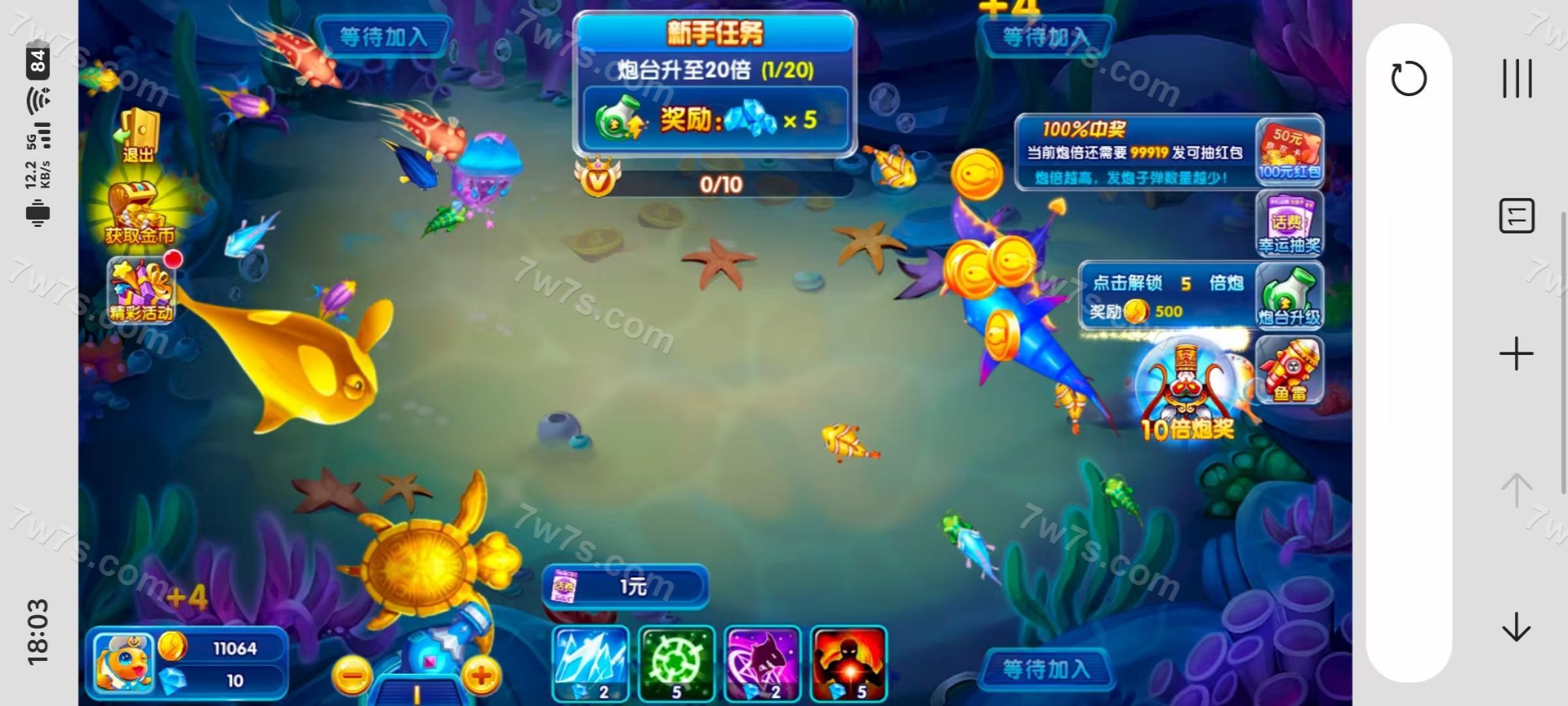 画面精美、动画效果绚丽、含有完整的任务系统、多种类活动系统(如每日活动、激励活动、节日活动等)、等级体系、广告体系、完善的磕金系统(如基金、周卡、月卡、年卡、炮台、翅膀等、激励氪金任务、打榜等)玩法不只有捕鱼还有很多有趣的玩法如寻宝啊、打塔等等吧这里就不多介绍了。客户端使用Creator跨平台开发可以编译多种客户端如:H5网页版、android/iosAPP、pc版等客户端。
