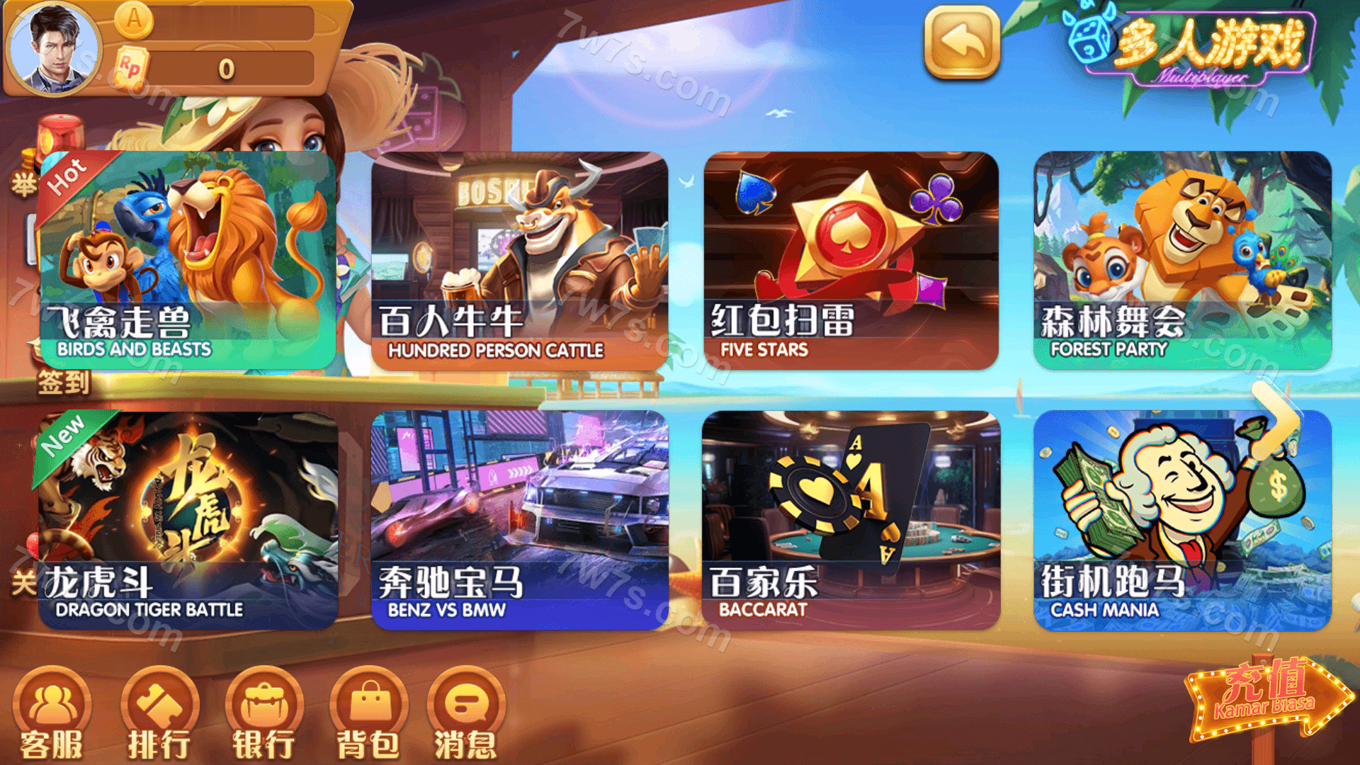 多人游戏:百人牛牛,龙虎斗,森林舞会(二代新),红包扫雷,百家乐,飞禽走兽,奔驰宝马,街机跑马,摇一摇