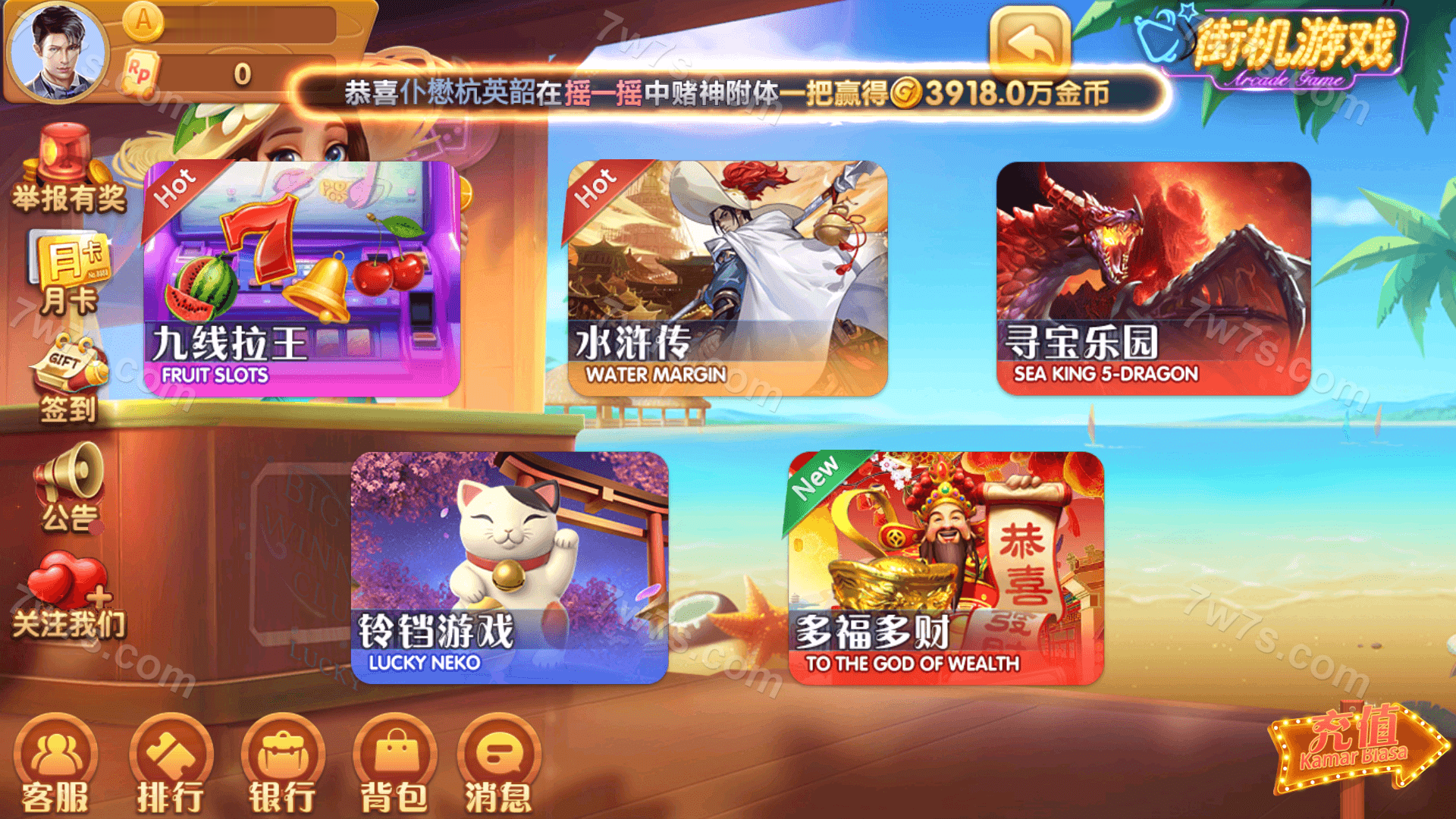 街机游戏:九线拉王,水浒传,寻宝乐园,锒铛游戏,多福多财,