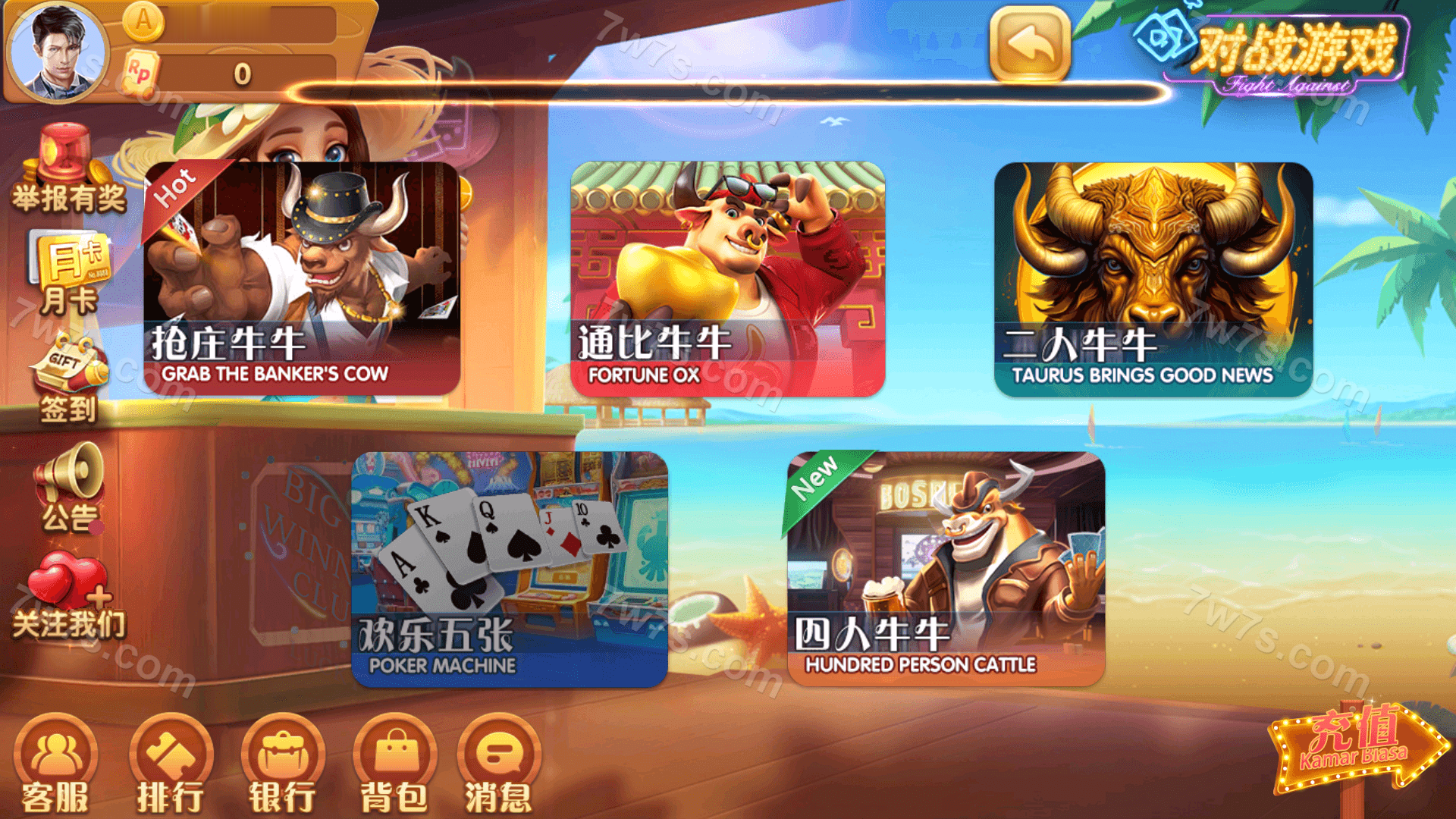 棋牌游戏:通比拼十,抢庄牛牛,二人牛牛,四人牛牛