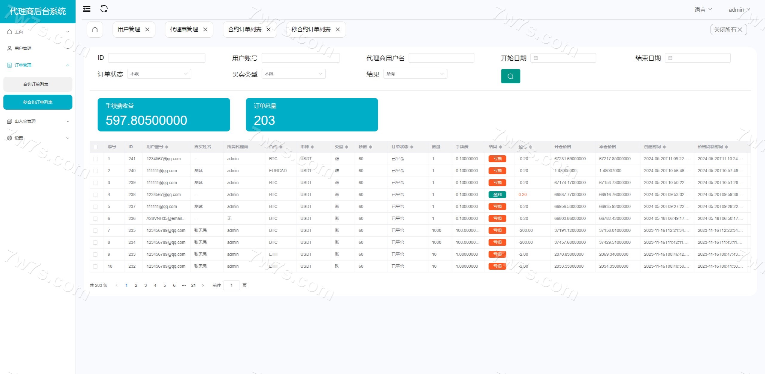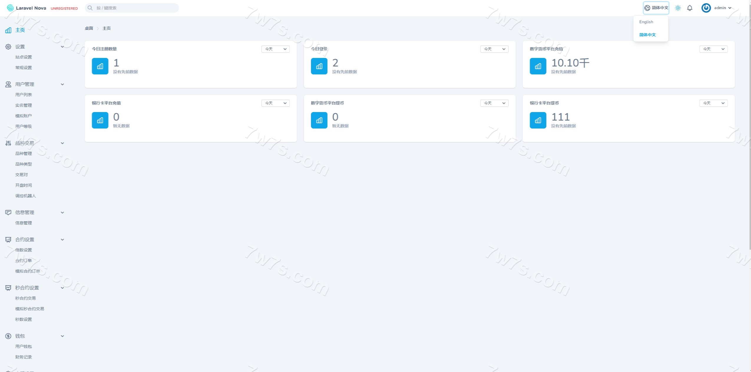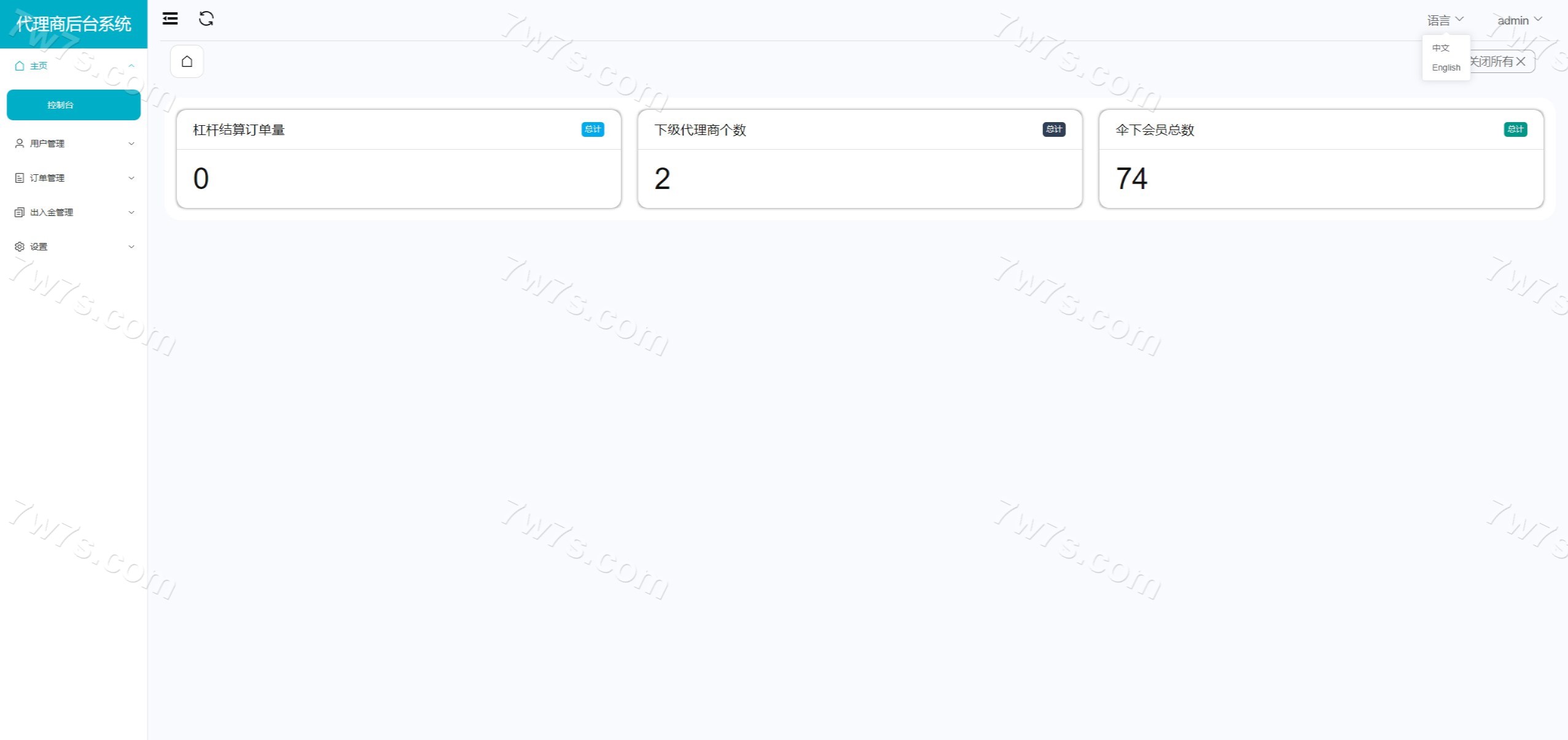 - 后台和代理后台都可中英文切换