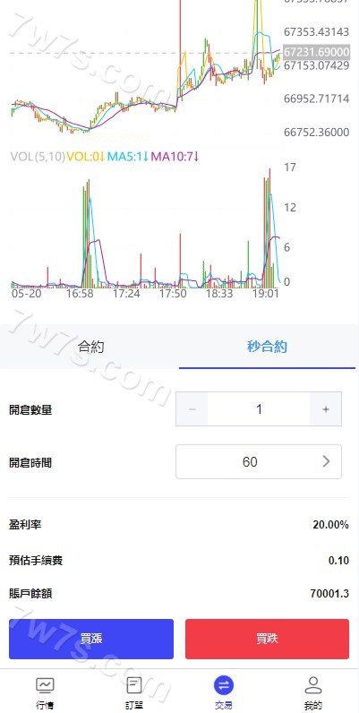 经测试全部币种k线可控制,设置上涨下跌浮点,