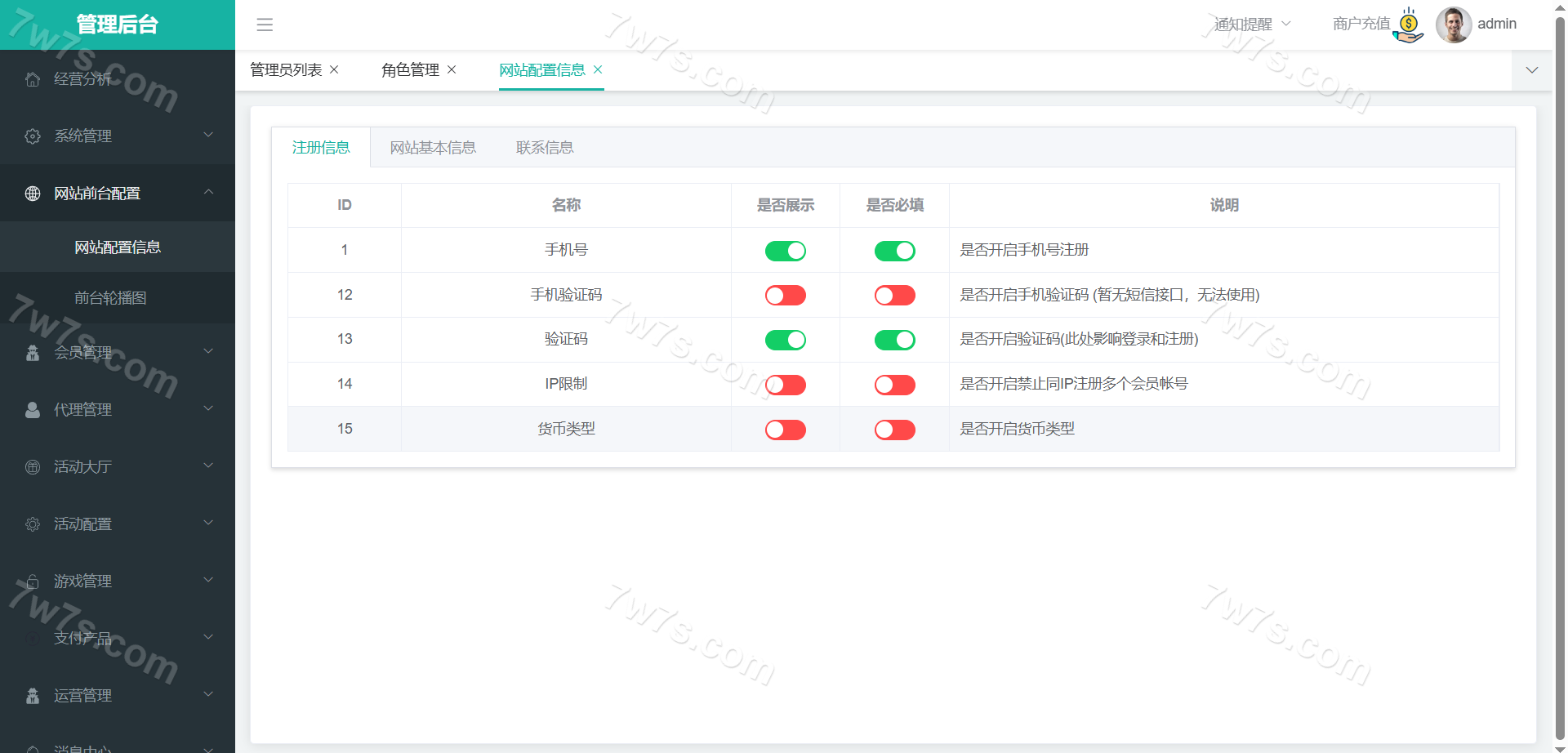 财务方面可以设置多种支付接口,包含了泰国越南USDT等接口