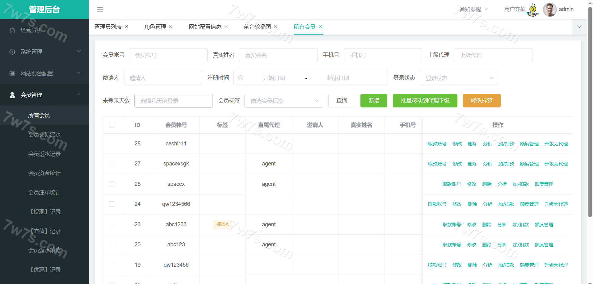 有独立的代理后台可以配置管理用户会员的反水投注信息等等