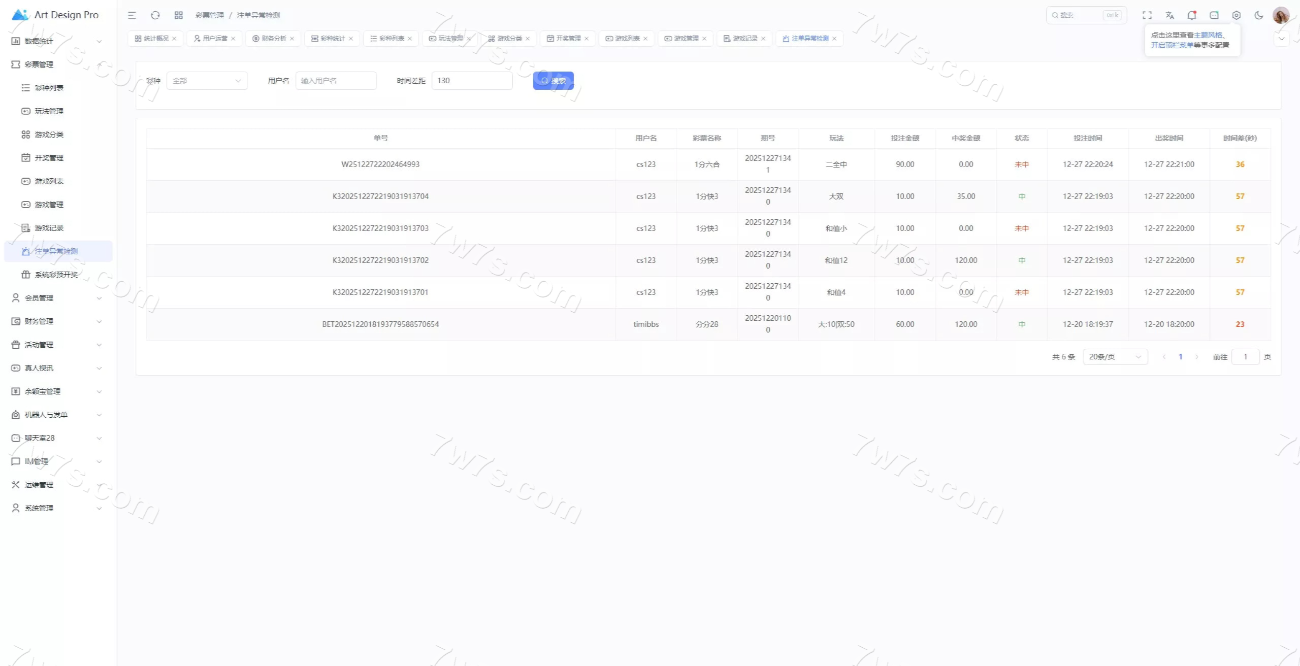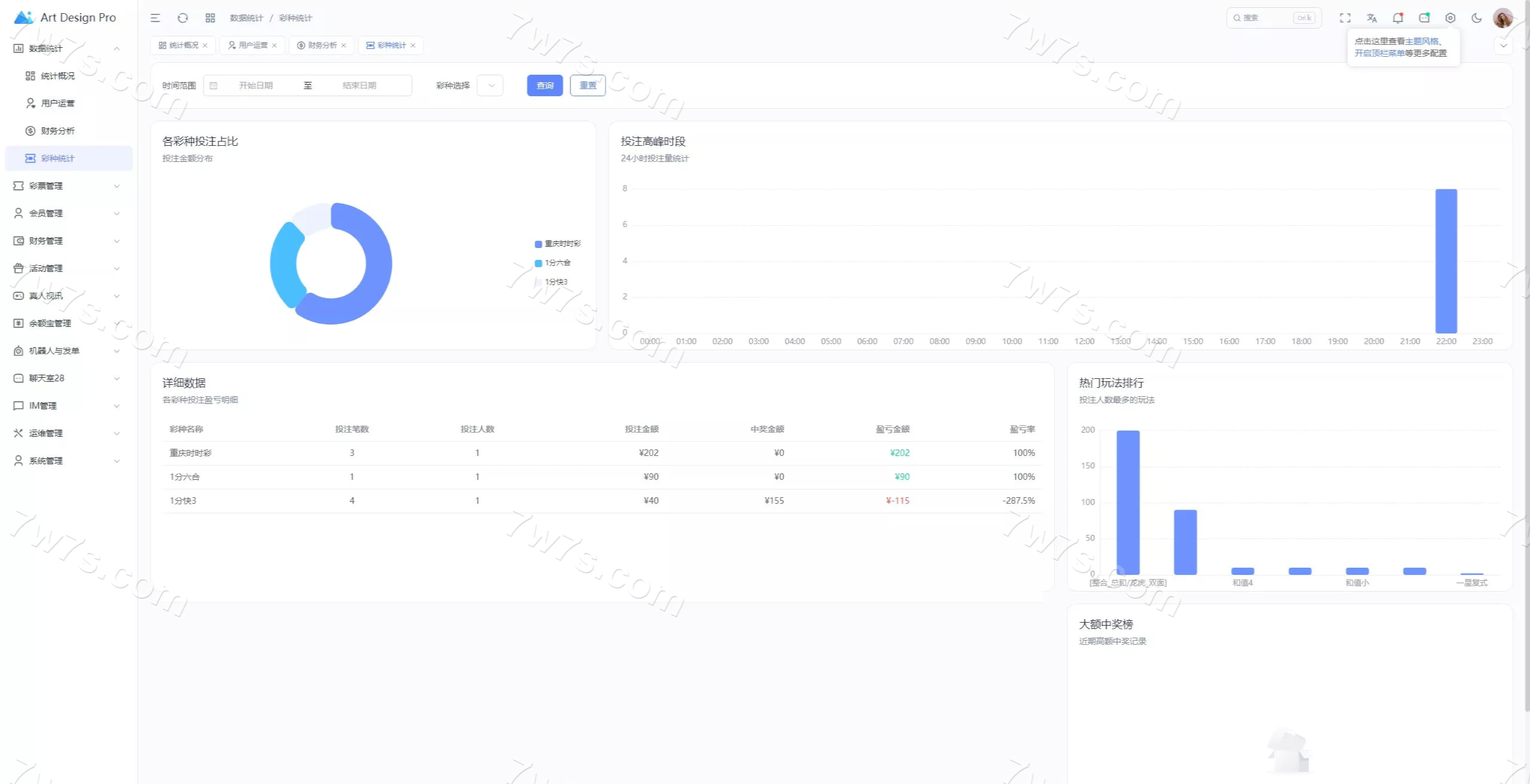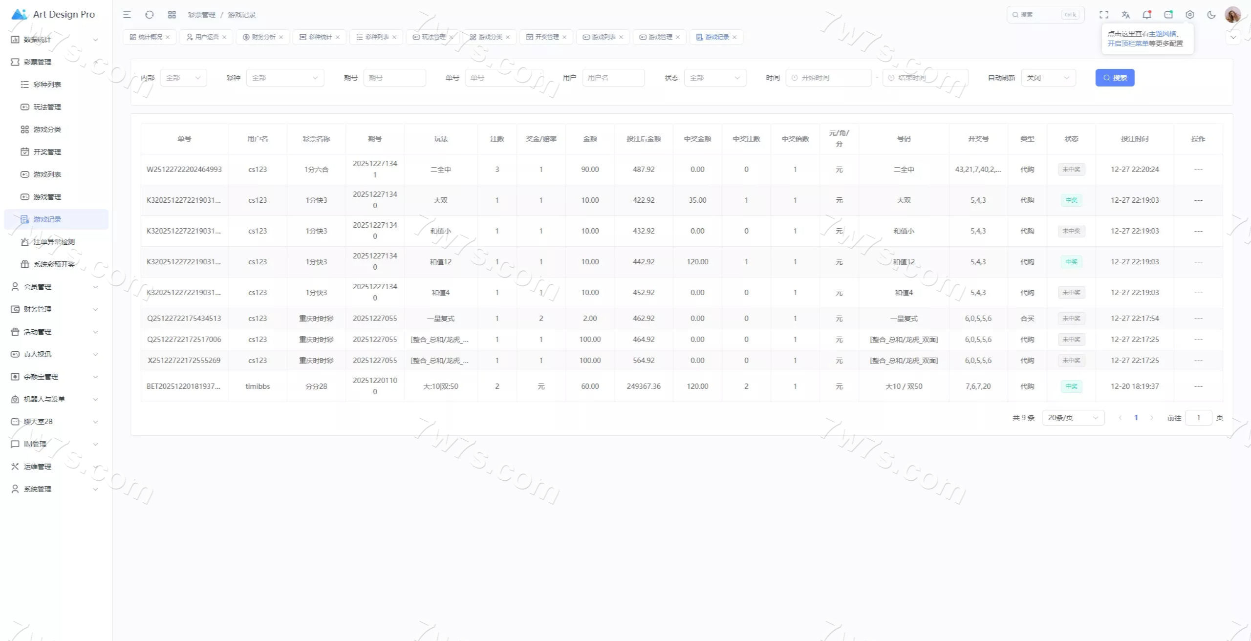 前端是采用的vue未编译的后端是php完整开源,功能齐全,接口对接的是乐娱现在是美盛,本地彩票于接口分离。