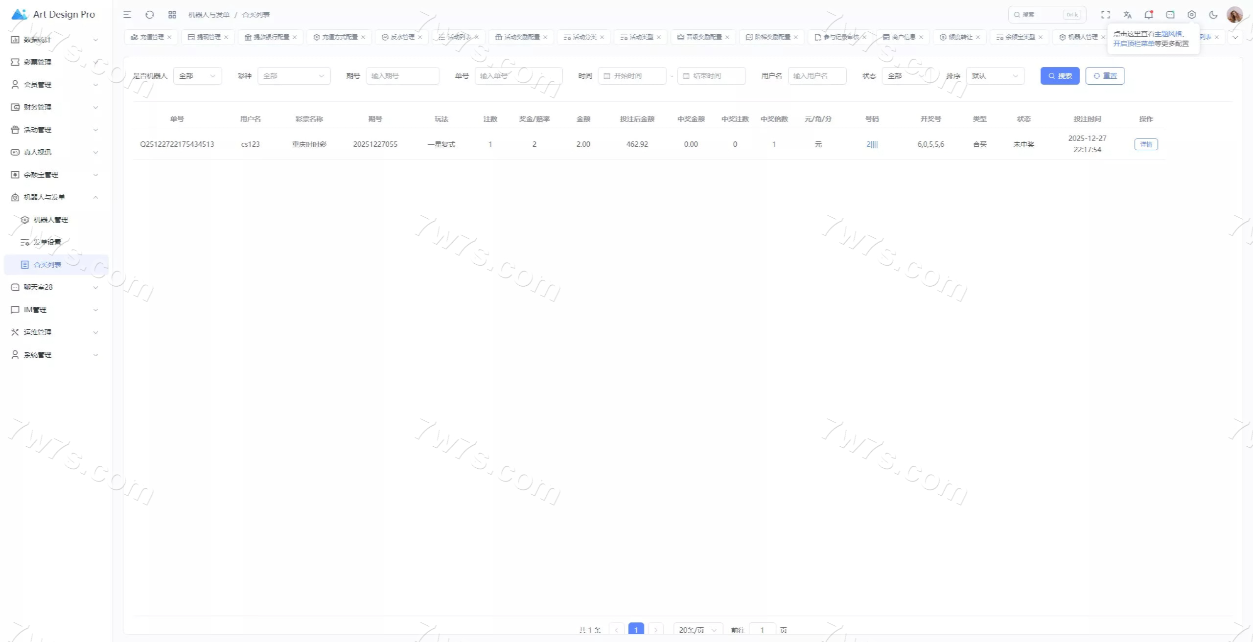 程序用的是TG接口,附带百款本地彩票,基本上功能比较完善。